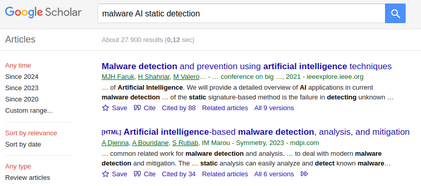Malware Detection in AI is not a new field. Theres a reasonable amount of Research done in this field. If you search in Google Scholar, You will find many research papers on “Static Malware Analysis using AI”.