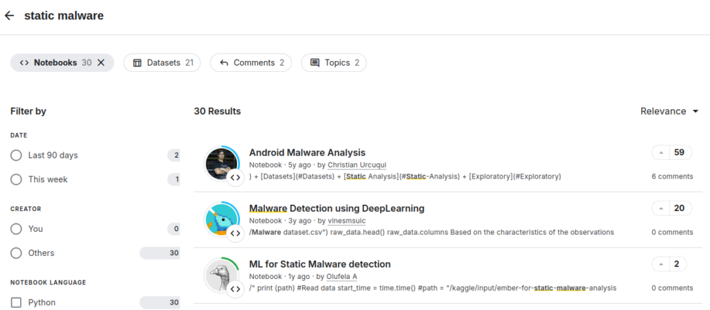 One recurrent problem is most of this research is a “point in time”. Overtime as techniques evolve, Model performance deteriorate, and new samples are required along with retraining and feature engineering of the models. For this is necessary a source of Fresh Malware Samples.